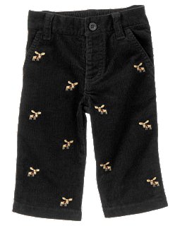 Festive embroidered moose add allover style to our classic pant that’s just right for his holiday fashion. Soft cotton corduroy design features front and mock back pockets with belt loops and button detail at the waist. A snap fly makes dressing easy.